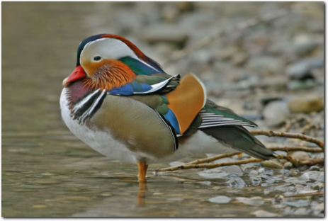 La nature semble avoir mis toute sa fantaisie dans ce véritable feu d’artifice qu’est le Mandarin mâle, affublé de lignes audacieuses auxquelles ne manque aucune couleur de l’arc-en-ciel. S’il est plutôt dédaigné des ornithologues, qui ne voient en lui qu’un «métèque» introduit par l’Homme, ce canard spectaculaire est actuellement menacé par la déforestation et la chasse dans sa patrie originelle d’Extrême-Orient.