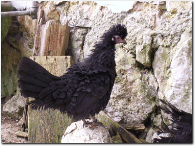 C'est une race très originale au squelette fin possédant une chair excellente et fine. Poule de taille moyenne, elle possède un plumage frisé sur le dos, les ailes et la poitrine avec une petite huppe.